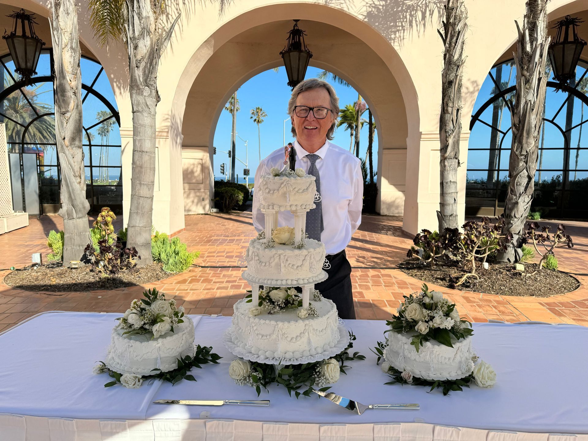 The picture of me is at the Santa Barbara Hilton beachfront resort for my granddaughter's wedding.